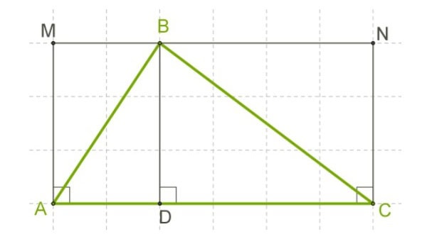 Если треугольник не имеет прямого угла, можно построить два прямоугольника, как показано на рисунке.