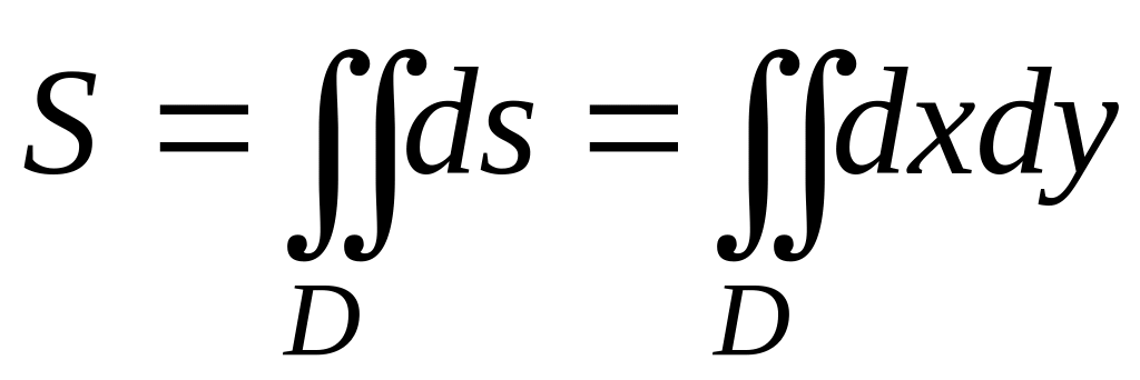 площадь равна двойному интегралу: