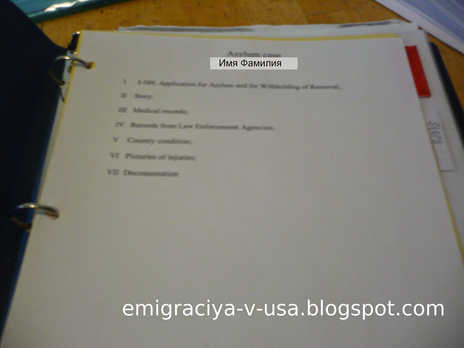 Пример содержания оригинальной папки-кейса на политическое убежище в США: